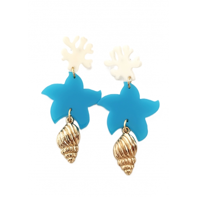 Brincos vibrantes em forma de estrela do mar, ideais para looks de verão cheios de cor e energia. Materiais: resina esmaltada, liga metálica Medidas: aprox. 4,5 cm