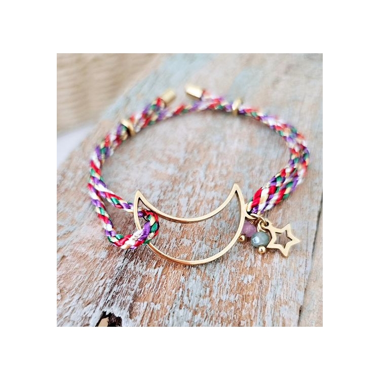 Pulseira em cordão de seda com ananás em aço inoxidável e olho de murano. Ajustável ☆ Feito à mão com amor ☆ Misture e combine com suas peças favoritas ☆ Para garantir que suas peças durem o máximo possível, consulte nossas instruções de cuidados.5,90 €DisponívelPULSEIRA LUAR